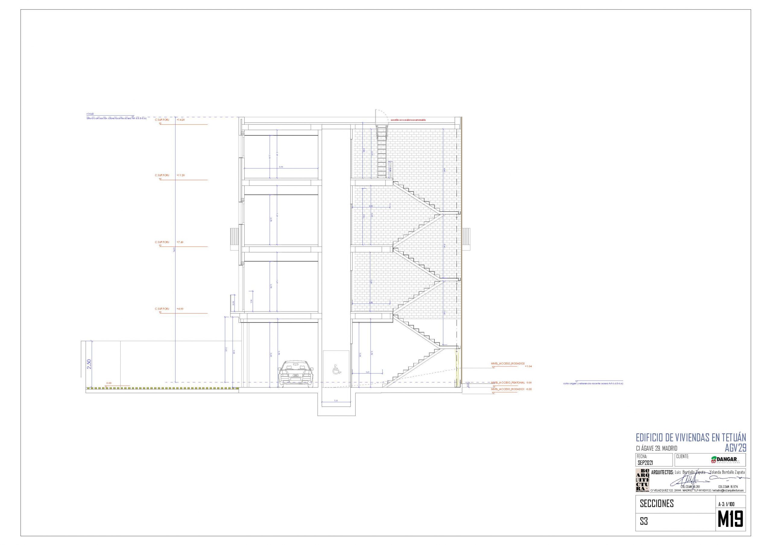 Debido al pronunciado desnivel existente, con 1,80m entre los extremos de fachada, se plantean los accesos a diferentes niveles, en acuerdo con la rasante de calle en cada punto.
