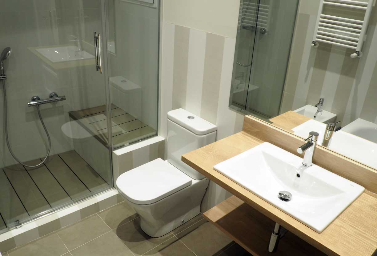 Dadas las características del inmueble origen, de 223 m2 [varias zonas de estar, zona de servicio, baños pequeños] y las necesidades de los usuarios de autonomía y privacidad, se propone la división de la vivienda en dos, duplicando usos e individualizando accesos, desde un espacio común de entrada.